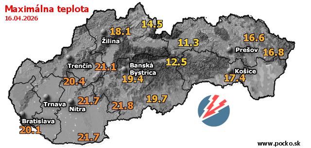 Namerané maximálne teploty z vybraných staníc na Slovensku.
