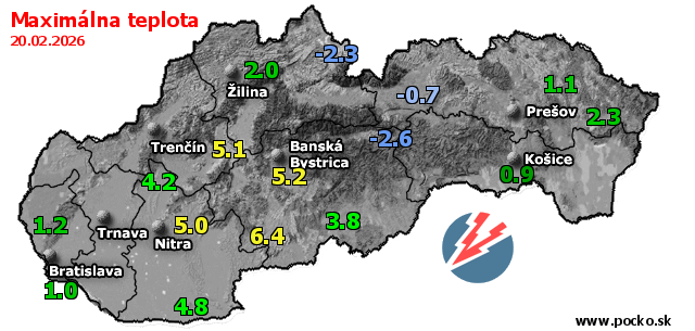 Maximálna teplota - dnes (20.02.2026)