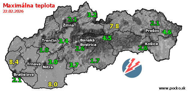 Namerané maximálne teploty z vybraných staníc na Slovensku.