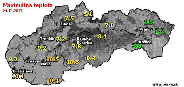 Maximálna teplota - dnes (24.12.2017)