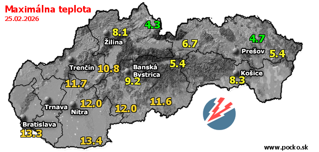 Maximálna teplota - dnes (25.02.2026)