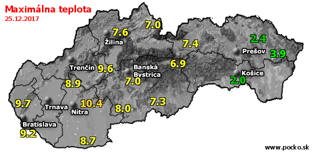 Maximálna teplota - dnes (25.12.2017)