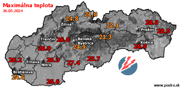 Maximálna teplota - dnes (26.05.2024)