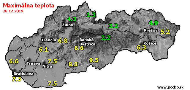 Namerané maximálne teploty z vybraných staníc na Slovensku.