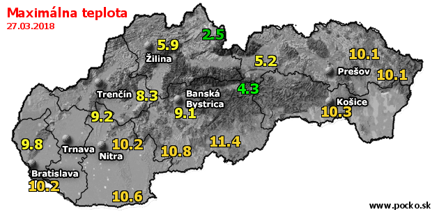 Maximálna teplota - dnes (27.03.2018)