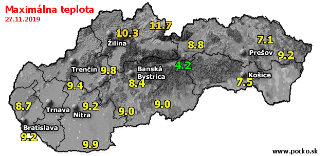 Maximálna teplota - dnes (27.11.2019)