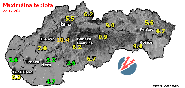 Maximálna teplota - dnes (27.12.2024)
