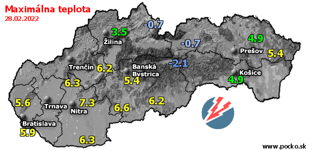 Maximálna teplota - dnes (28.02.2022)
