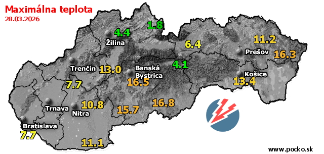Maximálna teplota - dnes (28.03.2026)