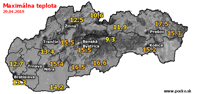 Maximálna teplota - dnes (29.04.2019)
