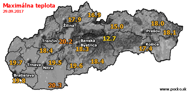 Maximálna teplota - dnes (29.09.2017)
