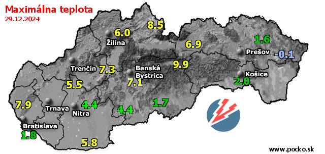 Maximálna teplota - dnes (29.12.2024)