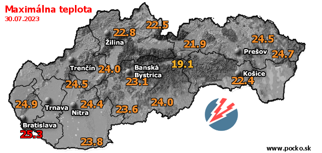 Maximálna teplota - dnes (30.07.2023)