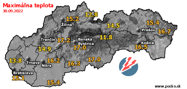 Maximálna teplota - dnes (30.09.2022)