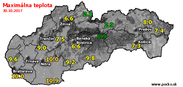 Maximálna teplota - dnes (30.10.2017)