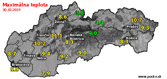 Maximálna teplota - dnes (30.10.2019)
