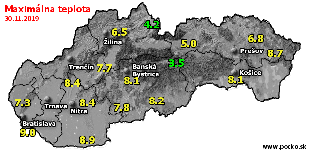 Namerané maximálne teploty z vybraných staníc na Slovensku.