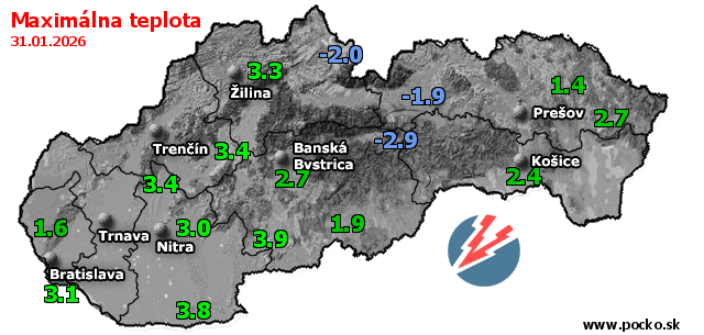 Maximálna teplota - dnes (31.01.2026)