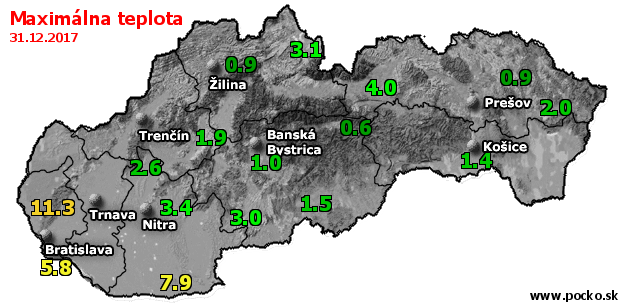 Maximálna teplota - dnes (31.12.2017)