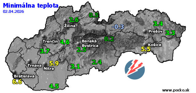 Minimálna teplota - dnes (02.04.2026)