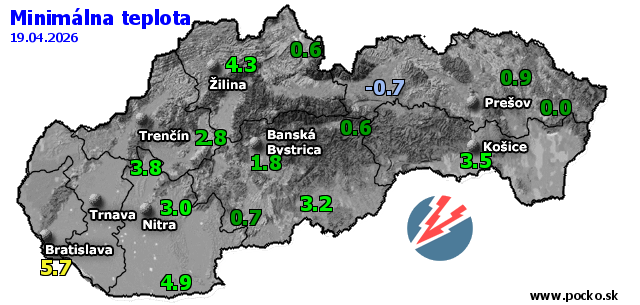 Minimálna teplota - dnes (19.04.2026)
