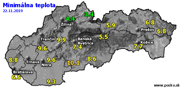 Minimálna teplota - dnes (22.11.2019)