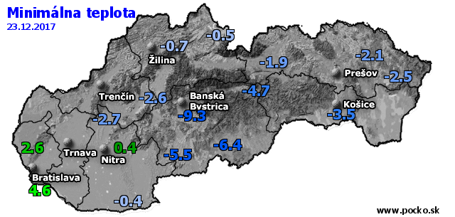 Namerané minimálne teploty z vybraných staníc na Slovensku.
