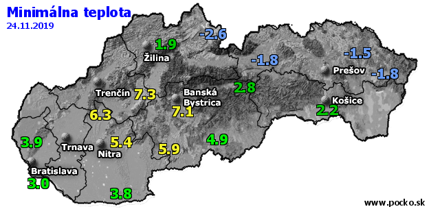 Minimálna teplota - dnes (24.11.2019)