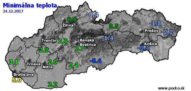 Minimálna teplota - dnes (24.12.2017)