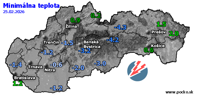 Namerané minimálne teploty z vybraných staníc na Slovensku.