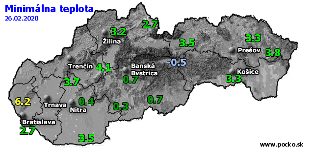 Minimálna teplota - dnes (26.02.2020)