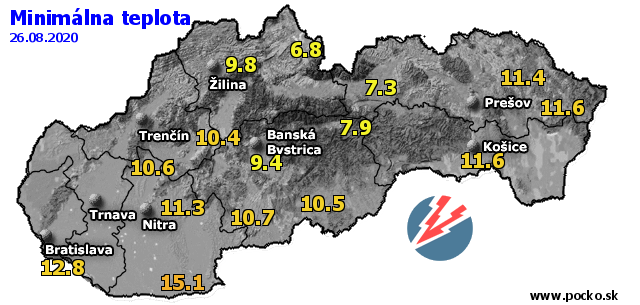 Minimálna teplota - dnes (26.08.2020)