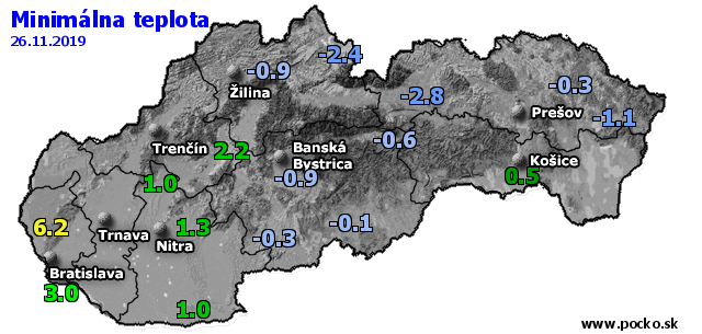 Minimálna teplota - dnes (26.11.2019)