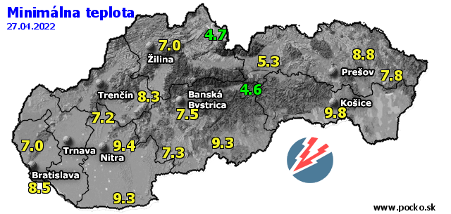 Namerané minimálne teploty z vybraných staníc na Slovensku.