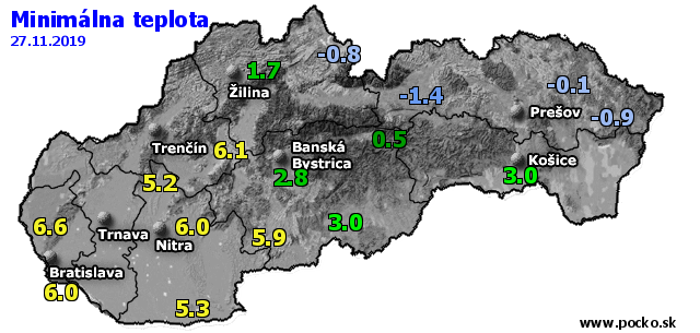 Minimálna teplota - dnes (27.11.2019)