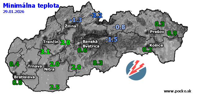 Minimálna teplota - dnes (29.01.2026)