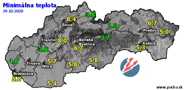 Minimálna teplota - dnes (29.10.2020)