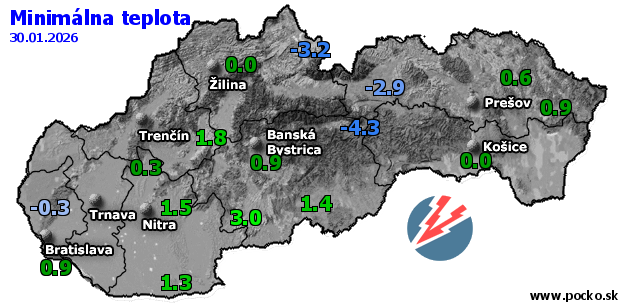 Namerané minimálne teploty z vybraných staníc na Slovensku.