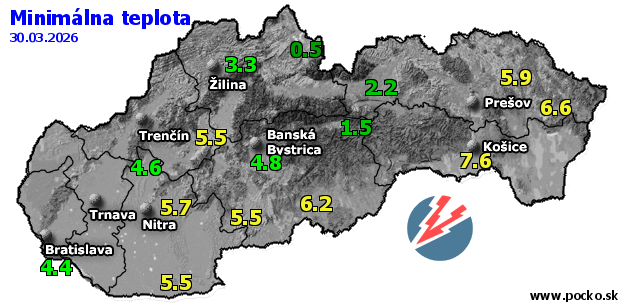 Minimálna teplota - dnes (30.03.2026)