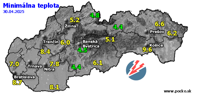 Minimálna teplota - dnes (30.04.2025)