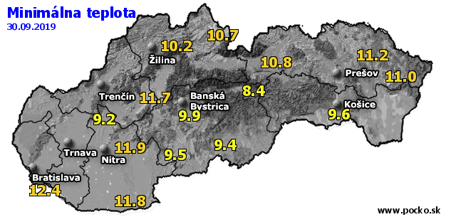 Minimálna teplota - dnes (30.09.2019)