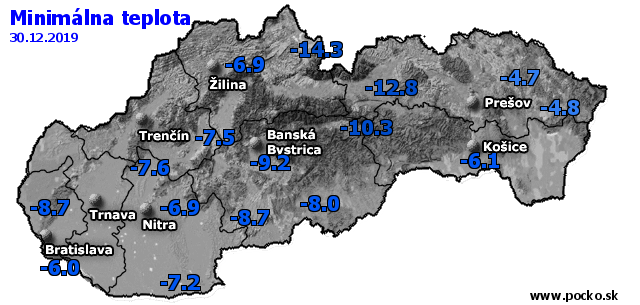 Minimálna teplota - dnes (30.12.2019)