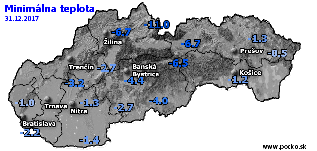 Namerané minimálne teploty z vybraných staníc na Slovensku.