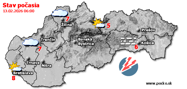 Stav počasia - Slovensko (13.02.2026 o 6.00 hod.)