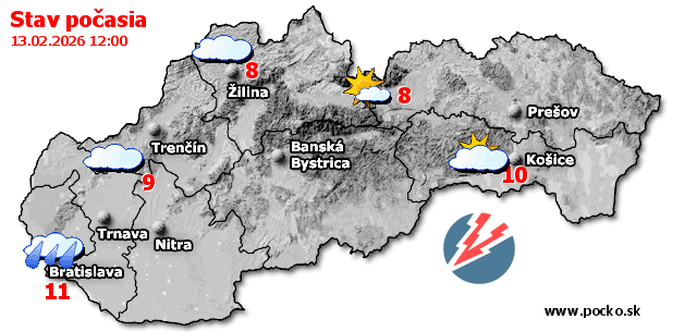 Stav počasia - Slovensko (13.02.2026 o 12.00 hod.)