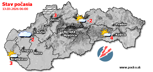 Stav počasia - Slovensko (13.03.2026 o 6.00 hod.)