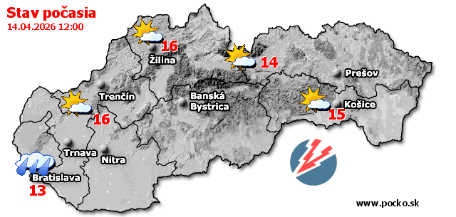 Stav počasia - Slovensko (14.04.2026 o 12.00 hod.)