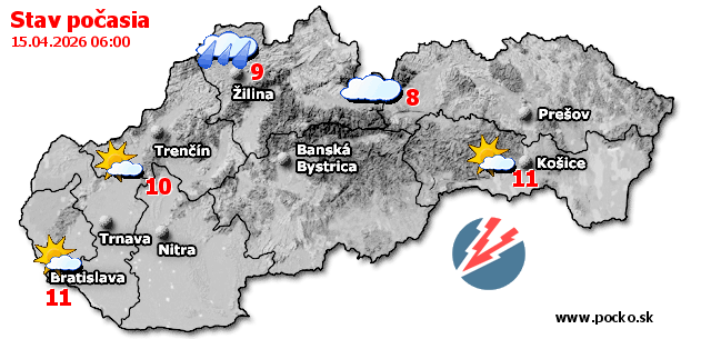 Stav počasia - Slovensko (15.04.2026 o 6.00 hod.)
