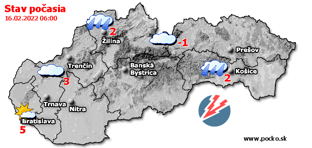 Stav počasia - Slovensko (16.02.2022 o 6.00 hod.)