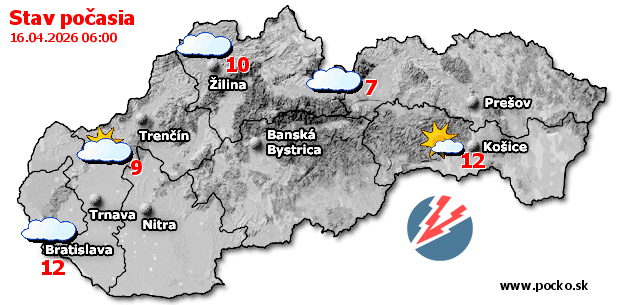Stav počasia - Slovensko (16.04.2026 o 6.00 hod.)